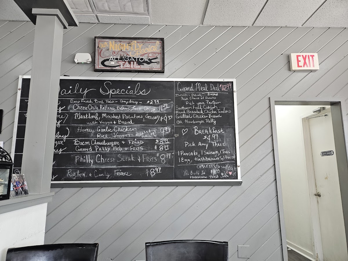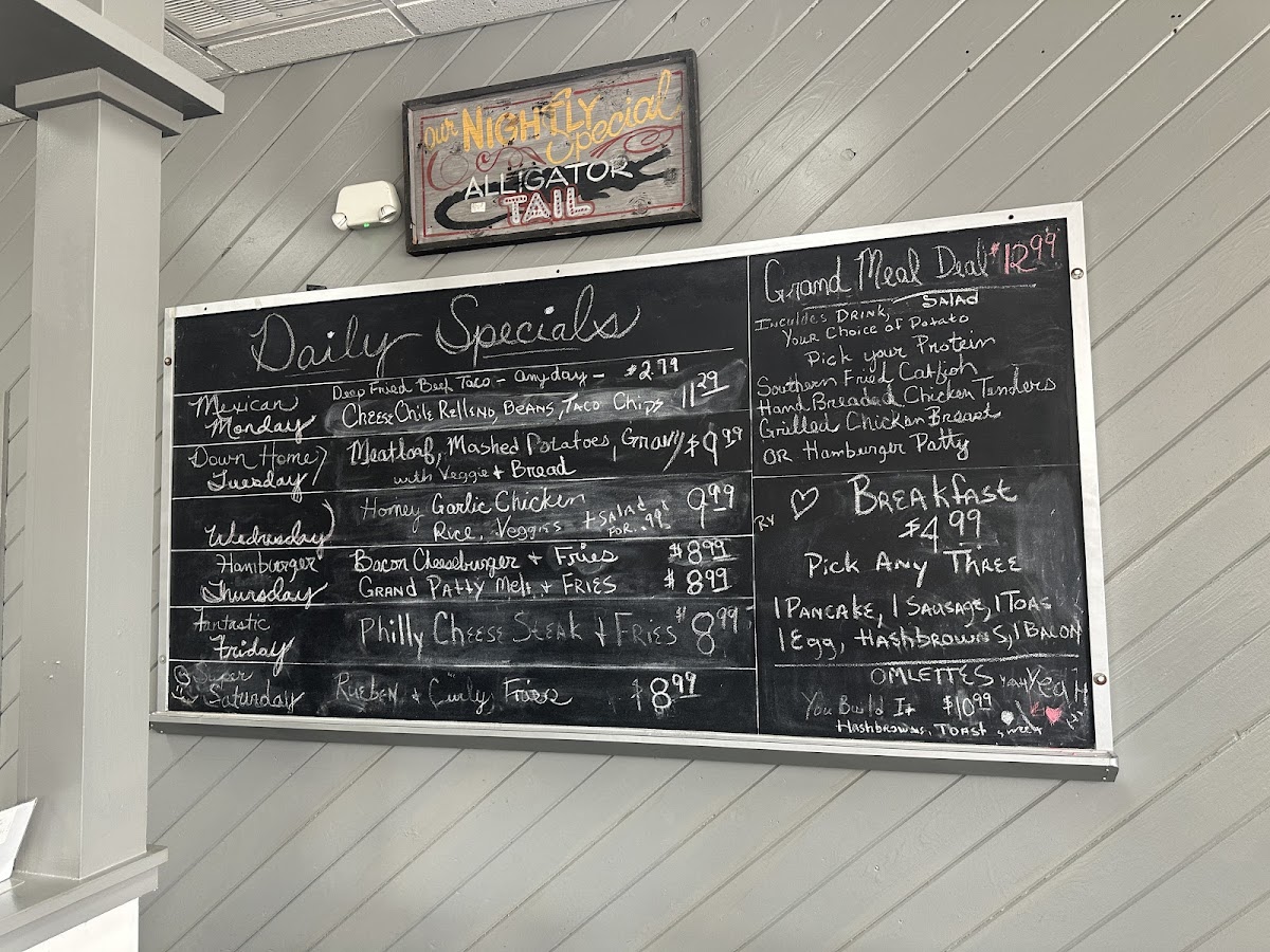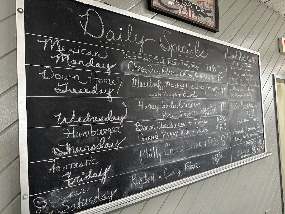 The Grand Cafe offers a diverse and satisfying menu that caters to various tastes and cravings. For breakfast, diners can enjoy hearty options like the Omelette, The Express, El Grande Burrito, and the indulgent Grand Master Chicken Biscuit. Sweet tooths are also in for a treat with the Sweet Beginnings. For those craving something light, the Delicious Duos combine a Sandwich & Salad or a Sandwich & Chips. The cafe’s Handhelds include the classic Grand All Beef Burger, the savory Smoked Ham & Jack, the deliciously loaded Philly Cheese Steak, and the ever-popular Reuben Sandwich. Starters like Mushrooms, Fried Pickles, and Loaded Bacon Cheese Fries add a great start to any meal. For something more filling, the Grand Meal Deal features options like Chicken Bites, Hamburger Patty, Grilled Chicken Breast, and Southern Fried Catfish. Kids can enjoy their own selection, with dishes like Chicken Bites and Grilled Cheese. Side options like Curly Fries, Sweet Potato Fries, and Fresh Potato Chips pair well with any meal. Beverage choices are equally varied, including Bottled Water, Coffee, Iced Tea, and Fountain Drinks. Whether you're stopping by for breakfast, a light snack, or a hearty meal, The Grand Cafe ensures a satisfying dining experience for all tastes and ages.